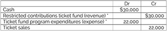 A local symphony orchestra receives $30,000 from the provincial government to be used to buy tickets to concerts which are to be given by the orchestra to students in schools in low-income districts. Although the full contribution is received in the current fiscal year, only $22,000 in tickets were given out in the current year. This is recorded as follows: