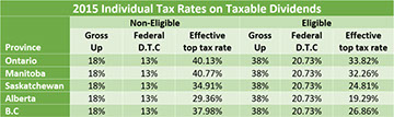 The following table summarizes the gross-up factor, dividend tax credit and effective top tax bracket rates of tax, on a provincial basis: