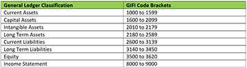 GIFI is an acronym for General Index of Financial Information and is in essence a series of account codes developed by CRA to provide a standardization of financial statement reporting. Each General Ledger (GL) account used in a corporation’s book of account will also have a GIFI code assigned to it that accurately reflects the nature of the account makeup.
